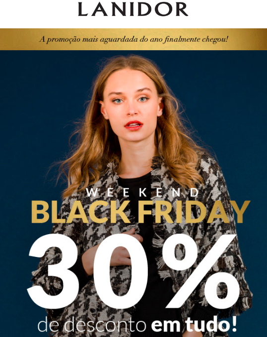 Black Friday LANIDOR 2019 Leave a Comment / Black Friday, Lanidor, Promoções / By admin Black Friday LANIDOR 2019 Black Friday LANIDOR 2019 tem descontos de 30% em toda a coleção! Aproveite porque é válida até 1 de dezembro.